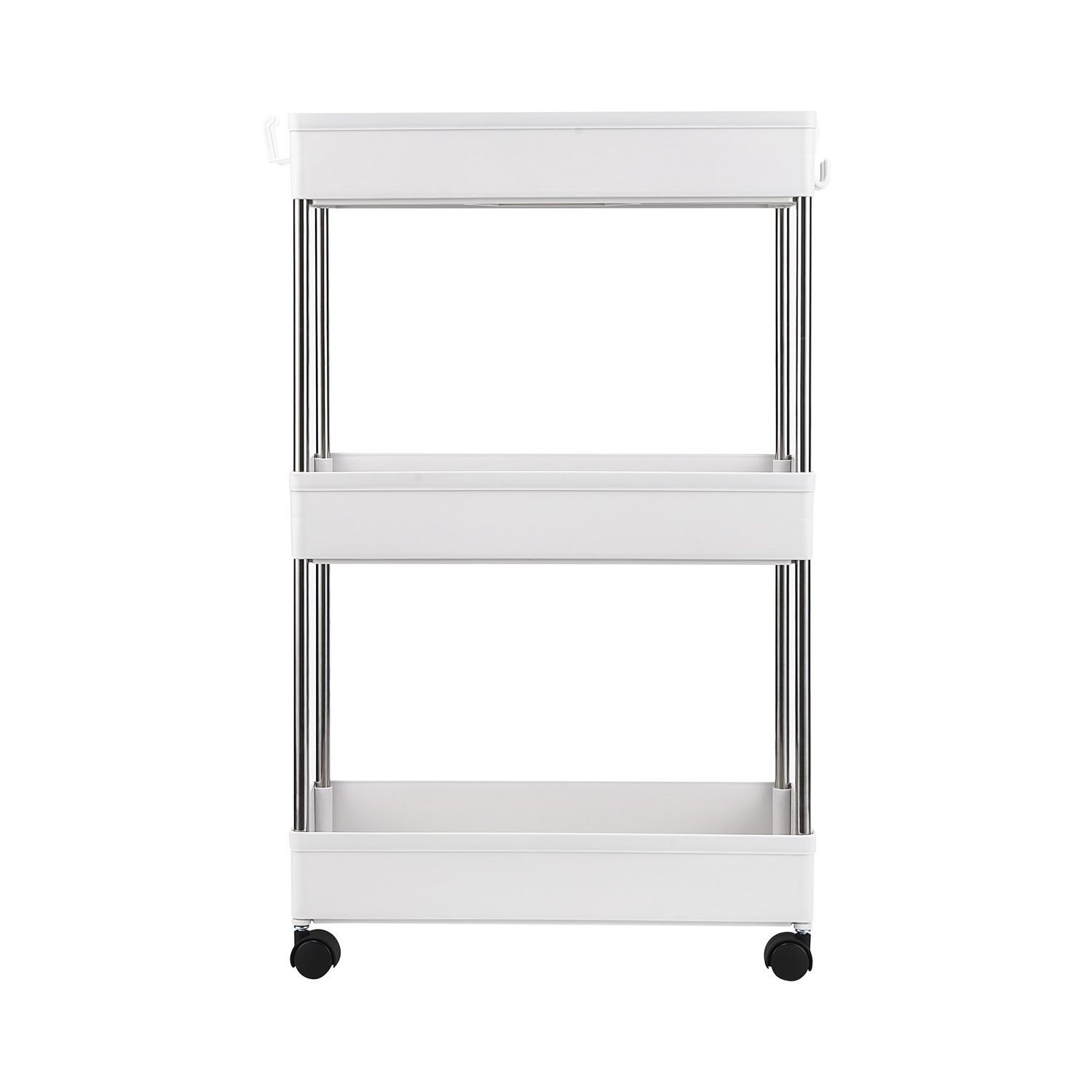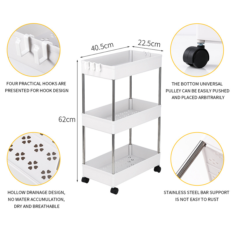 1. The 3-storey ultra-thin structure design of shopping cart can be placed in any small space in your home, including closet, kitchen, bathroom, garage, laundry room, office or between washing machine and dryer