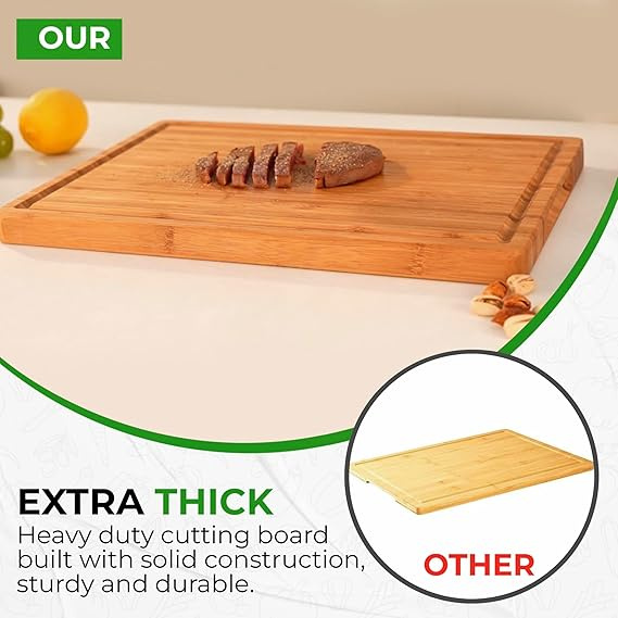 Bamboo cutting board for kitchen. Thick - Wooden cutting board with deep juice groove and side handles. Ideal Charcuterie & Chopping for Meat Bamboo cutting board for kitchen. Thick - Wooden cutting board with deep juice groove and side handles. Ideal Charcuterie & Chopping for Meat Bamboo cutting board for kitchen. Thick - Wooden cutting board with deep juice groove and side handles. Ideal Charcuterie & Chopping for Meat