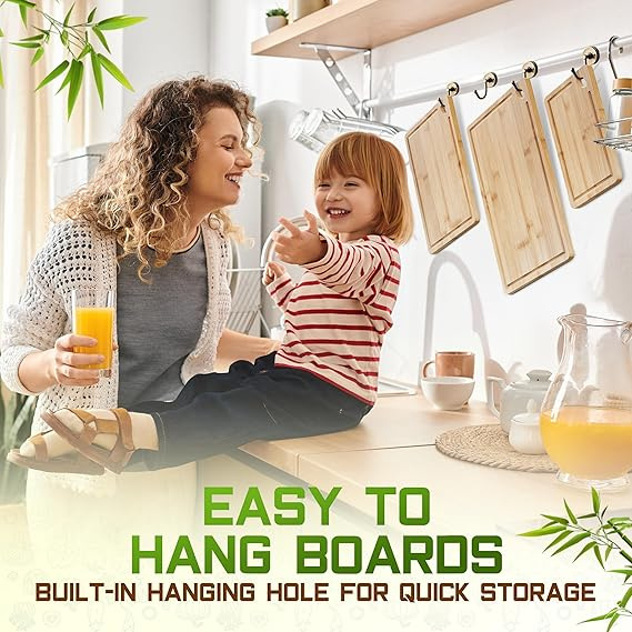 Home > Bamboo Cutting Board Set of 3 (15x10, 12x9, 9x6) – Extra-Thick, Deep Juice Groove Wood Cutting Boards – Knife-Friendly for Kitchen Prep