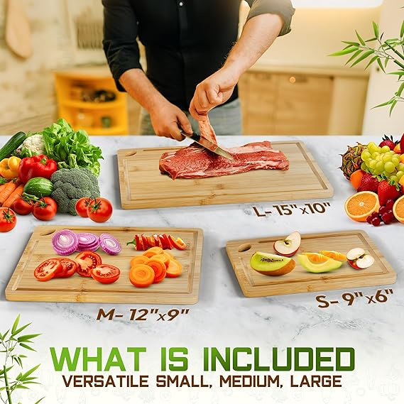 Bamboo Cutting Board Set of 3 (15x10, 12x9, 9x6) – Extra-Thick, Deep Juice Groove Wood Cutting Boards – Knife-Friendly for Kitchen Prep Bamboo Cutting Board Set of 3 (15x10, 12x9, 9x6) – Extra-Thick, Deep Juice Groove Wood Cutting Boards – Knife-Friendly for Kitchen Prep Bamboo Cutting Board Set of 3 (15x10, 12x9, 9x6) – Extra-Thick, Deep Juice Groove Wood Cutting Boards – Knife-Friendly for Kitchen Prep