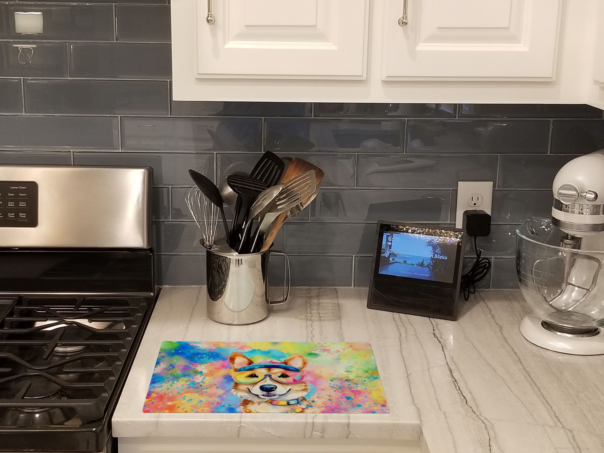 Home > NEW Corgi Hippie Dawg Glass Cutting Board Decorative Tempered Glass Kitchen Cutting and Serving Board Large Size Chopping Board