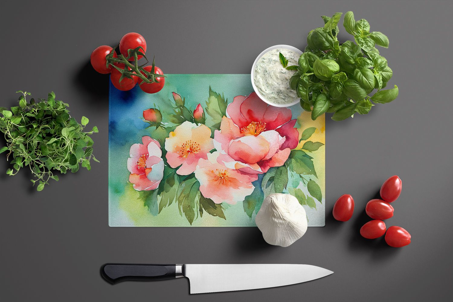 NEW Georgia Cherokee Rose in Watercolor Glass Cutting Board Decorative Tempered Glass Kitchen Cutting and Serving Board Large Size Chopping Board