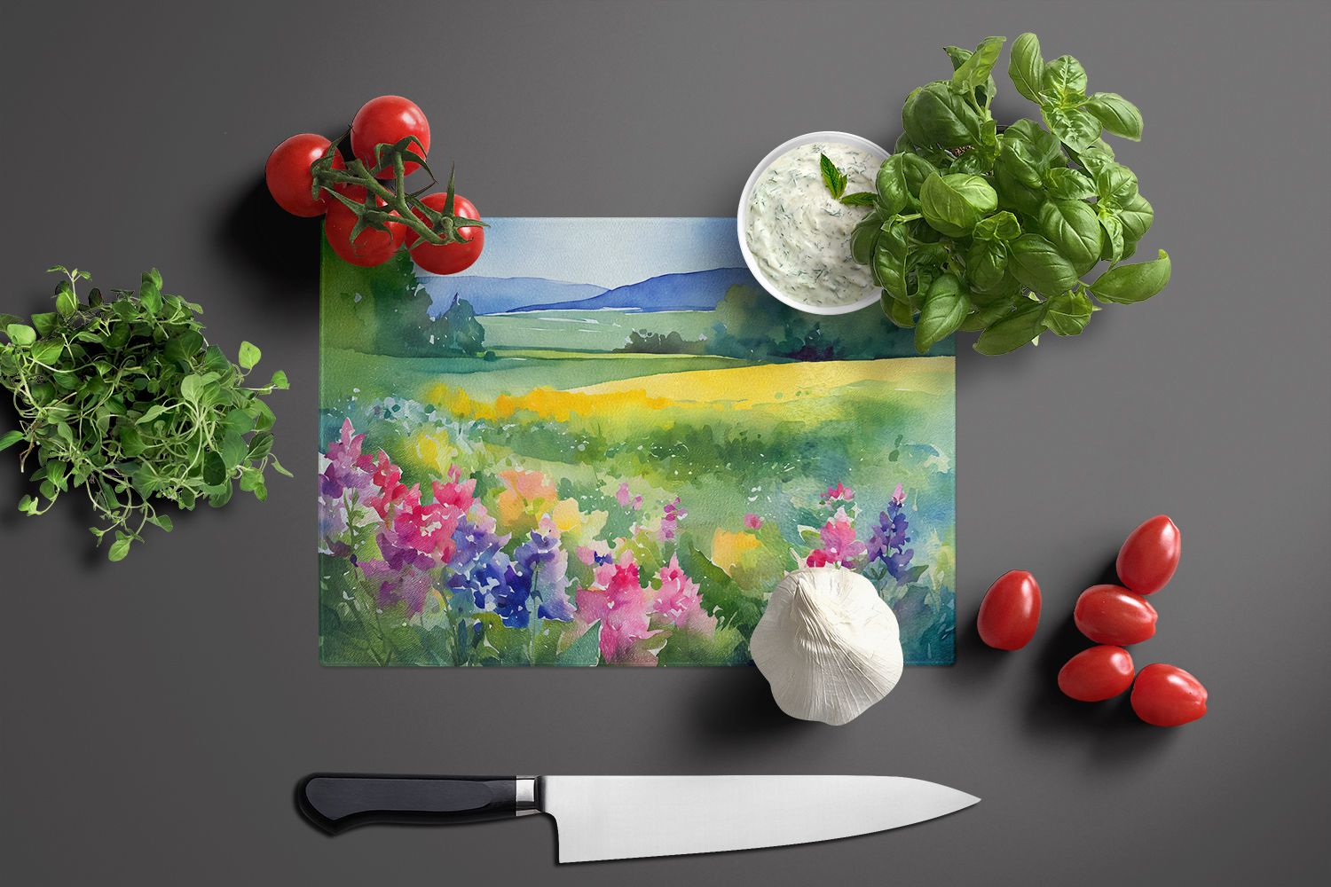 Home > NEW Massachusetts Mayflowers in Watercolor Glass Cutting Board Decorative Tempered Glass Kitchen Cutting and Serving Board Large Size Chopping Board